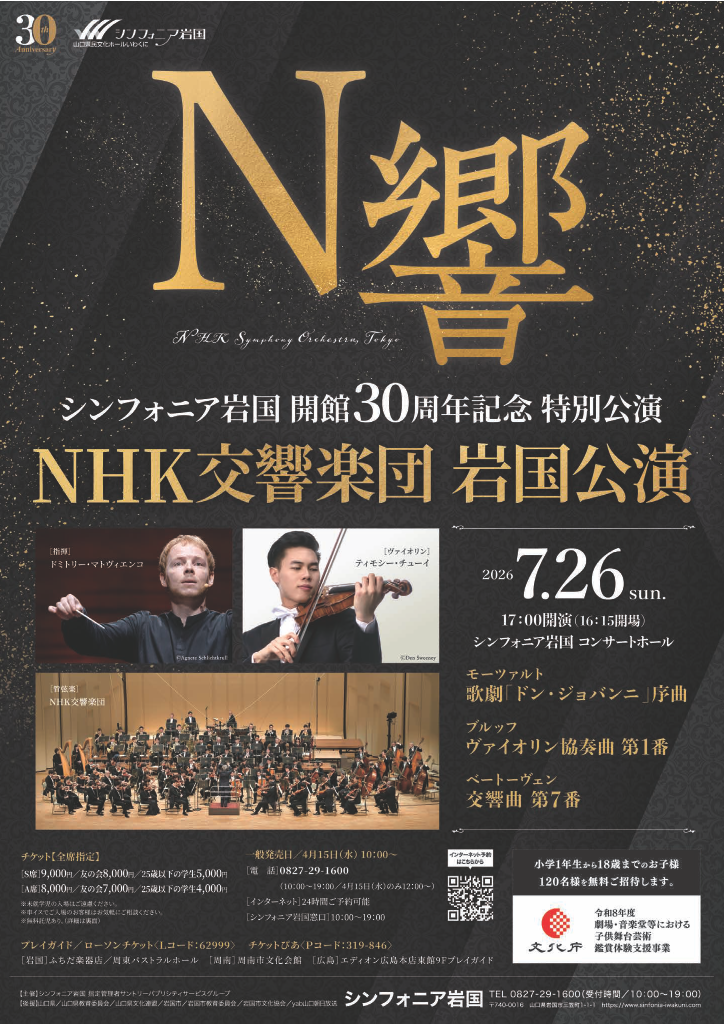 シンフォニア岩国 開館30周年記念 特別公演NHK交響楽団 岩国公演【好評発売中】