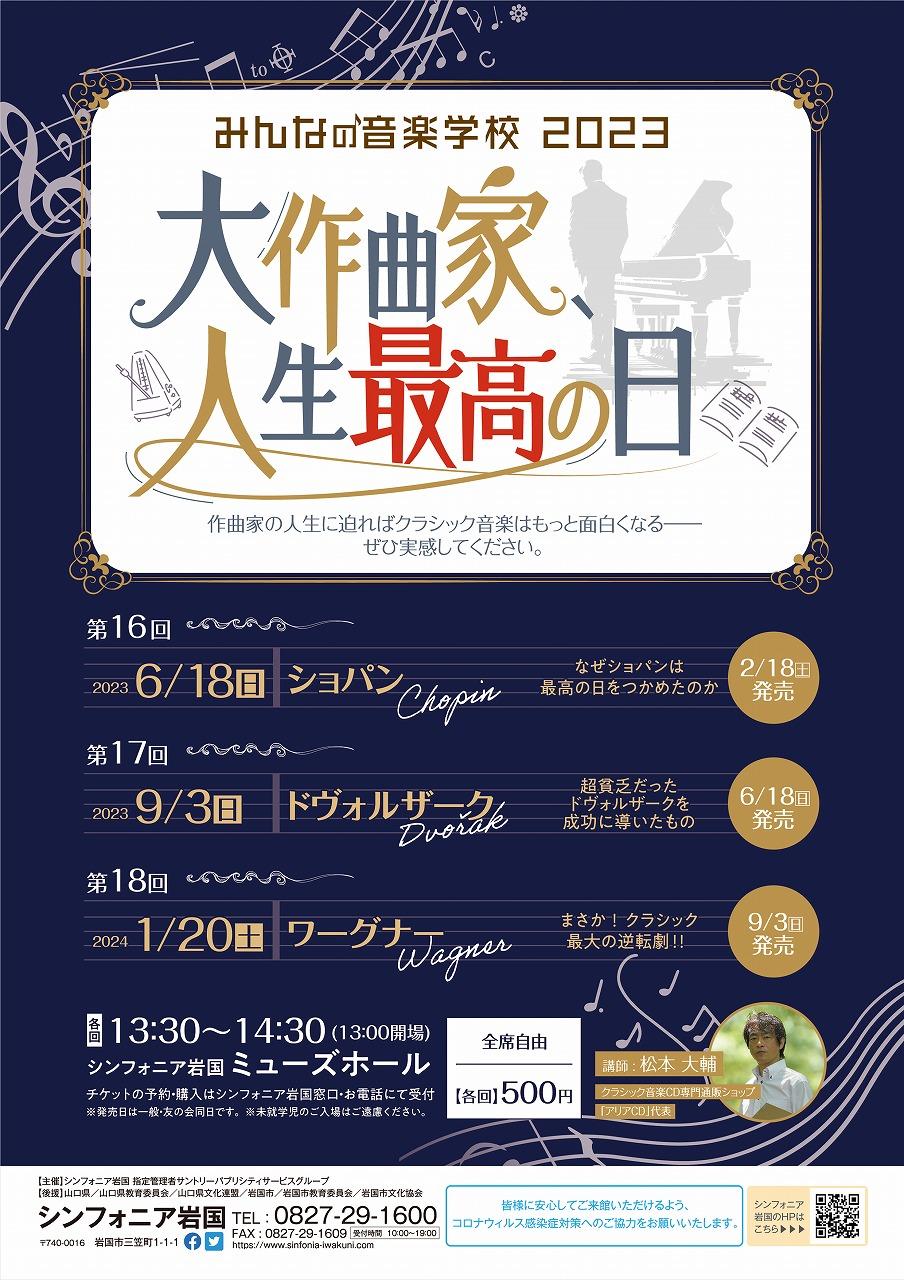 | 主催・後援等 | 【主催】シンフォニア岩国 指定管理者サントリーパブリシティサービスグループ 【後援】山口県/山口県教育委員会/山口県文化連盟/岩国市/岩国市教育委員会/岩国市文化協会 |