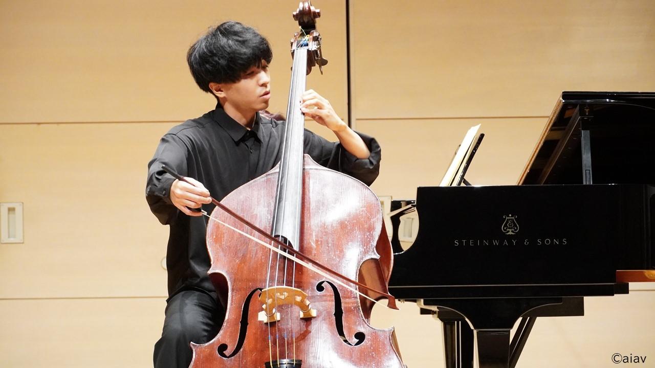 今回は、コントラバスの魅力をより知っていただくために違った方向性の楽曲でプログラムを組みました。1つは、ベートーヴェン「ホルンソナタ」やシューマン「アダージョとアレグロ」といった有名な楽曲で、コントラバス以外でも様々な楽器で演奏されています。そして、コントラバスのオリジナル楽曲から、フリーバ「無伴奏コントラバスのための古い様式による組曲」とボッテジーニ「カプリッチオ・ディ・ブラヴ―ラ」を演奏いたします。「カプリッチオ・ディ・ブラヴ―ラ」は、演奏するのに高度な技術が必要で、なかなか人前で演奏することができませんでした。昨年の秋吉台音楽コンクールで演奏することができ、楽器を弾きながらとても感動したことを今でも覚えています。今では、リサイタルやコンクールなど事あるごとに選曲していて、今の自分の魅力を最大限に出せる曲だと思っています。
