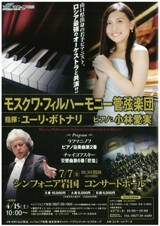 | 出演者 | 指揮者:ユーリ・ボトナリ ピアニスト:小林愛実(山口県宇部出身) オーケストラ:モスクワ・フィルハーモニー管弦楽団 |