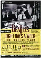 | 上映作品 | THE BEATLES 「EIGHT DYAS A WEEK」 THE TOURING YEARS 日本語字幕/上映時間108分 監督:ロン・ハワード (2016年イギリス映画) |