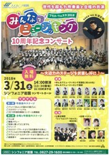 | 出演者 | ・音楽監督・指揮 矢澤定明、副指揮 中村冬威 ・みんなでミュージッキング受講生 約160名 ・みんなでミュージッキング講師 フルート:砂守 生子、オーボエ:齋藤 陽子、クラリネット:翁 優子・上野 瑞穂、 ファゴット:沖永 真澄、サキソフォン:宮田 麻美 トランペット:村上 俊也、ホルン:吉田 尚史、トロンボーン:福原 恭平、 ユーフォニアム:平林 さゆり、チューバ:湊 英幸、コントラバス:熊谷 麻弥、パーカッション:山下 やよい ・公募合唱団シンフォニア・フロイデ 約80名 ・合唱ソリスト ソプラノ:乗松恵美、メゾソプラノ:森明子 テノール:飯島聡志、バリトン:山岸玲音 ・コーラスマスター:村上謙一郎、練習ピアニスト:山下千佳 |