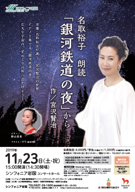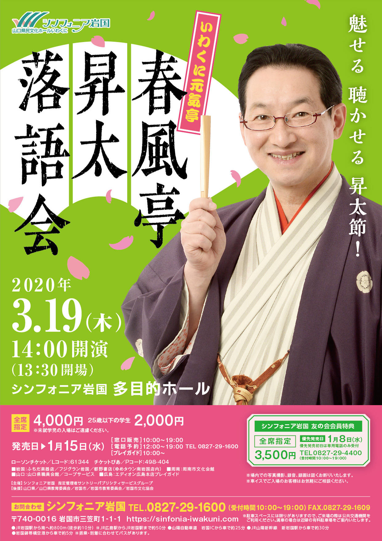 | 主催・後援等 | 【主催】シンフォニア岩国 指定管理者パブリシティサービスグループ/yab山口朝日放送 【後援】山口県/山口県教育委員会/岩国市/岩国市教育委員会/岩国市文化協会 |