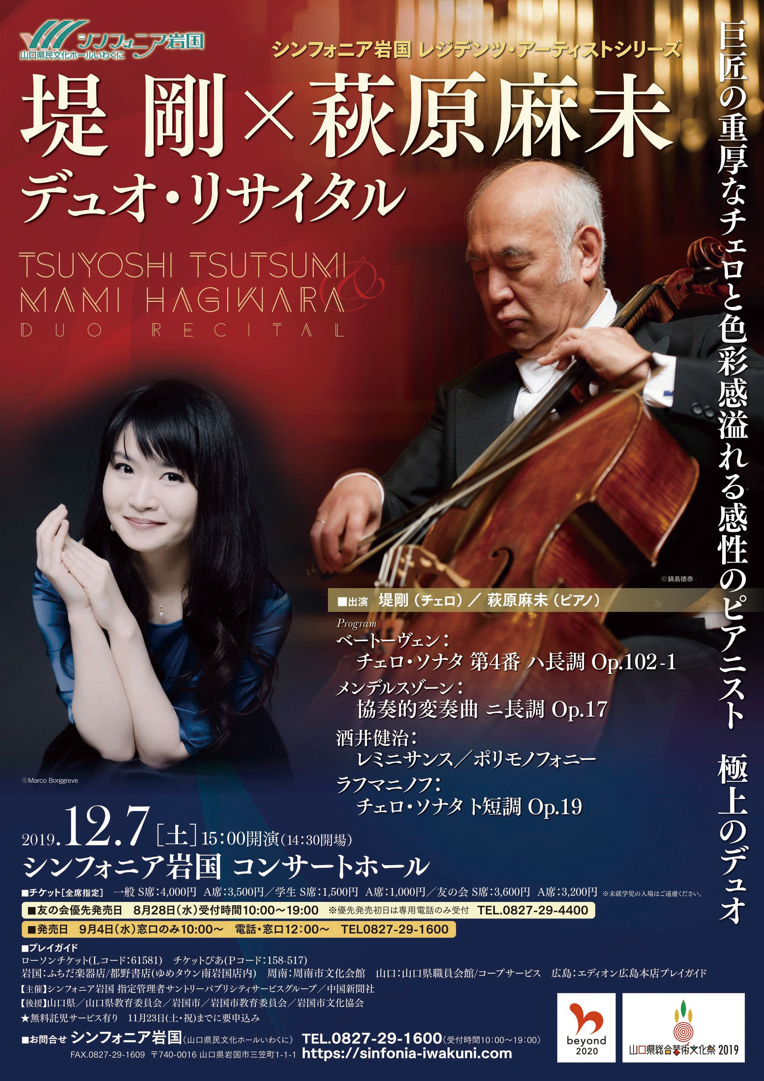 | 出演者 | チェロ:堤 剛 ピアノ;萩原麻未 |