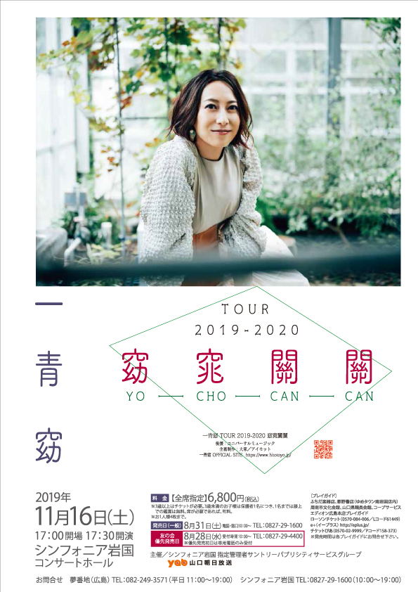 | 主催・後援等 | 【主催】シンフォニア岩国 指定管理者パブリシティサービスグループ/yab山口朝日放送 【後援】ユニバーサルミュージック 【協力】夢番地 |