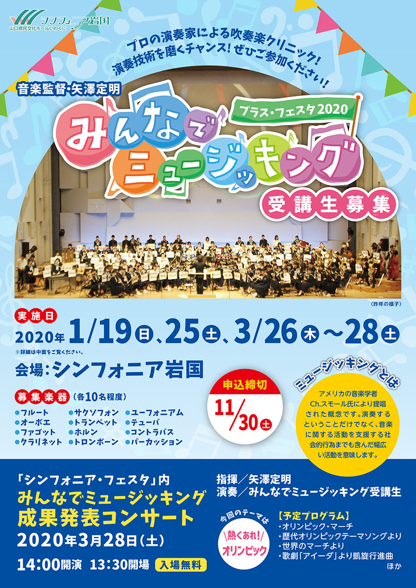 | 主催等 | 【主催】シンフォニア岩国 指定管理者サントリーパブリシティサービスグループ 【後援】山口県/山口県教育委員会/岩国市/岩国市教育委員会/岩国市文化協会 |