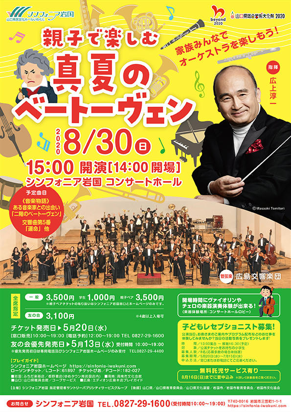 | 主催等 | 【主催】シンフォニア岩国 指定管理者サントリーパブリシティサービスグループ/yab山口朝日放送 【後援】山口県/山口県教育委員会/岩国市/岩国市教育委員会/岩国文化協会 【企画・製作】シーエイティプロデュース |