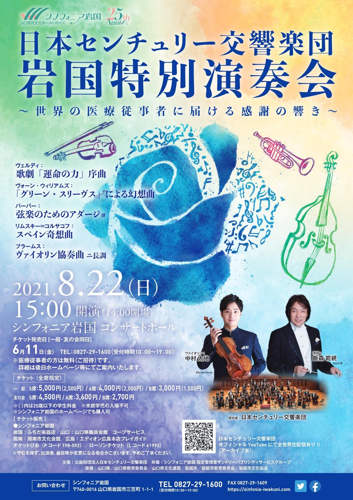 | 主催等 | 【主催】公益財団法人日本センチュリー交響楽団 【共催】シンフォニア岩国 指定管理者サントリーパブリシティサービスグループ 【後援】山口県/山口県教育委員会/山口県文化連盟/岩国市/岩国市教育委員会/ 岩国市文化協会 |