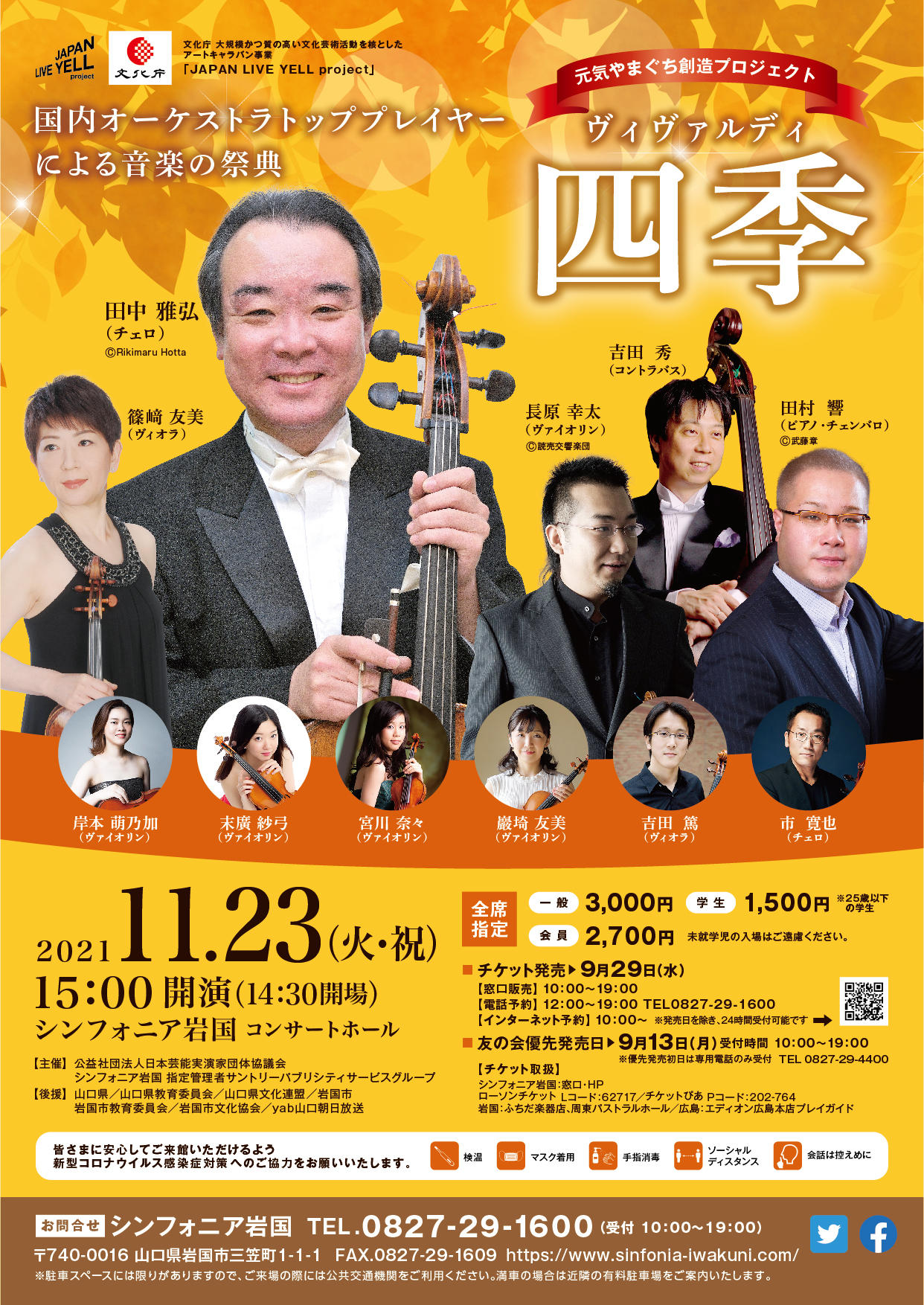 | 主催・後援等 | 【主催】シンフォニア岩国 指定管理者サントリーパブリシティサービスグループ 【後援】山口県/山口県教育委員会/山口県文化連盟/岩国市/岩国市教育委員会/岩国市文化協会/yab山口朝日放送 |