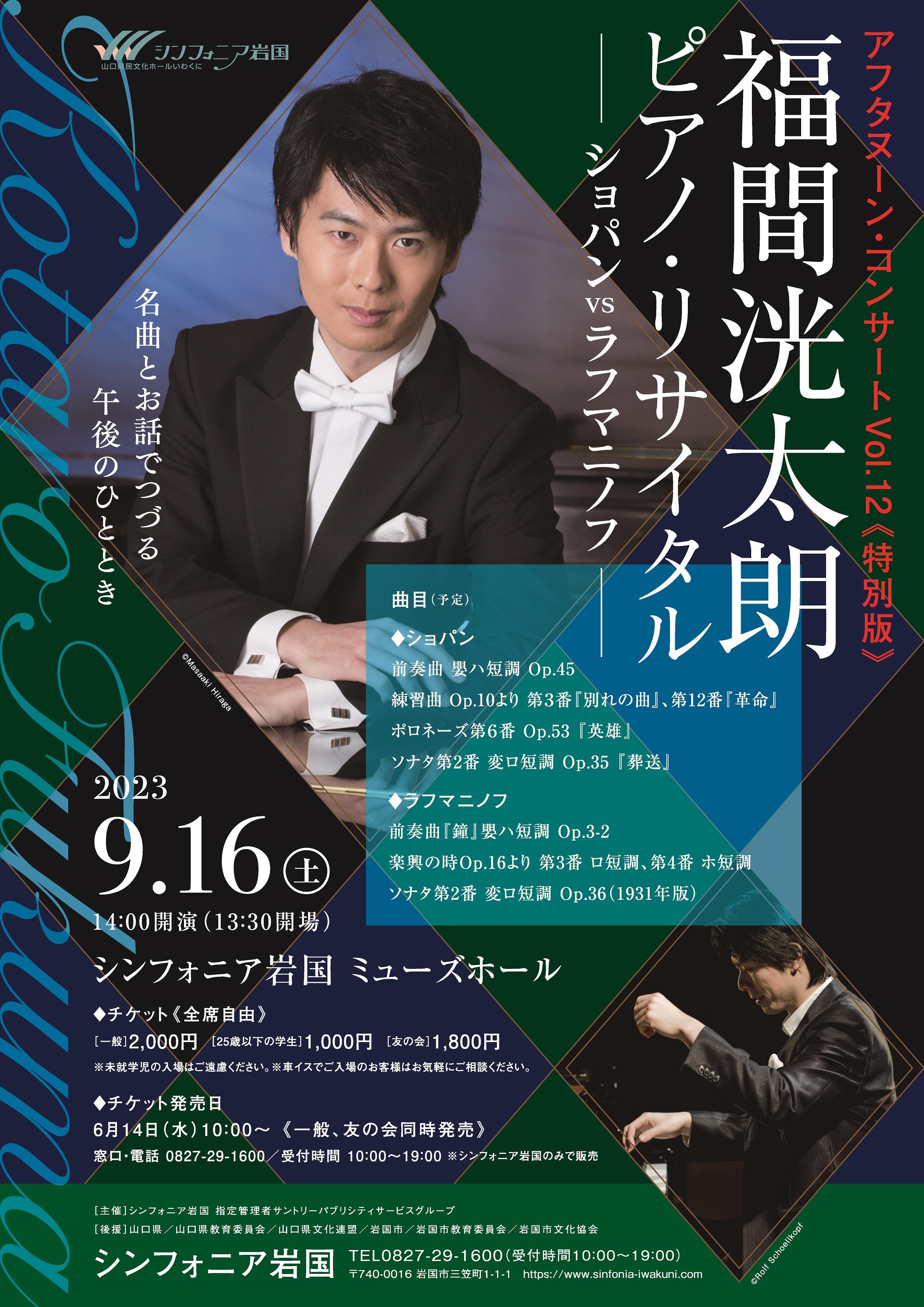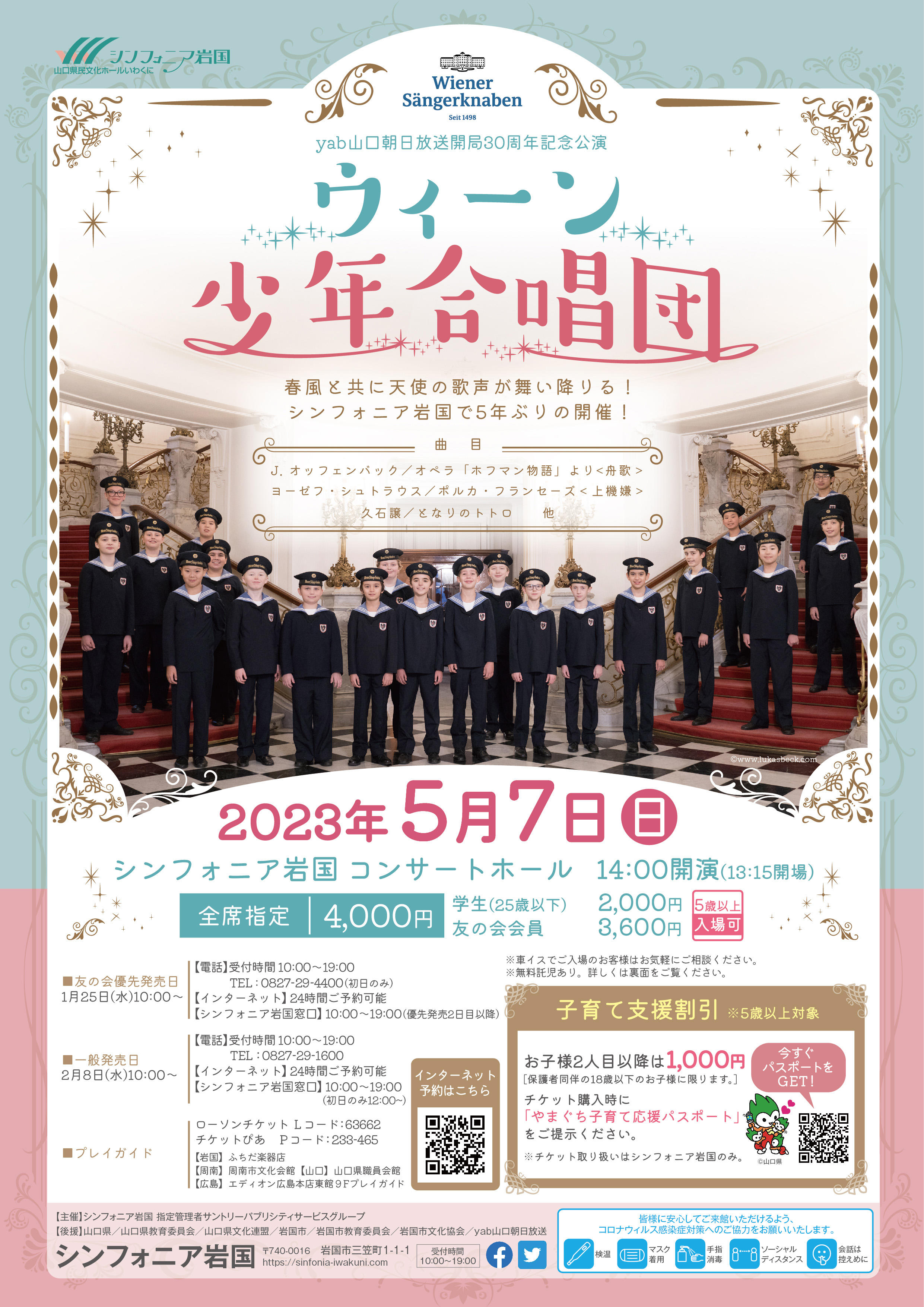 | 主催 | 【主催】シンフォニア岩国 指定管理者サントリーパブリシティサービスグループ 【後援】山口県/山口県教育委員会/山口県文化連盟/岩国市/岩国市教育委員会/岩国市文化協会/yab山口朝日放送 |