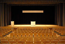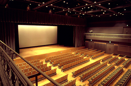 キャットウォーク高:7.2m(舞台より) スクリーン:幅5.0m 高さ3.5m 映像設備:1チップDLPレーザープロジェクター(8801lm) / 映像入力付きパソコン台 |