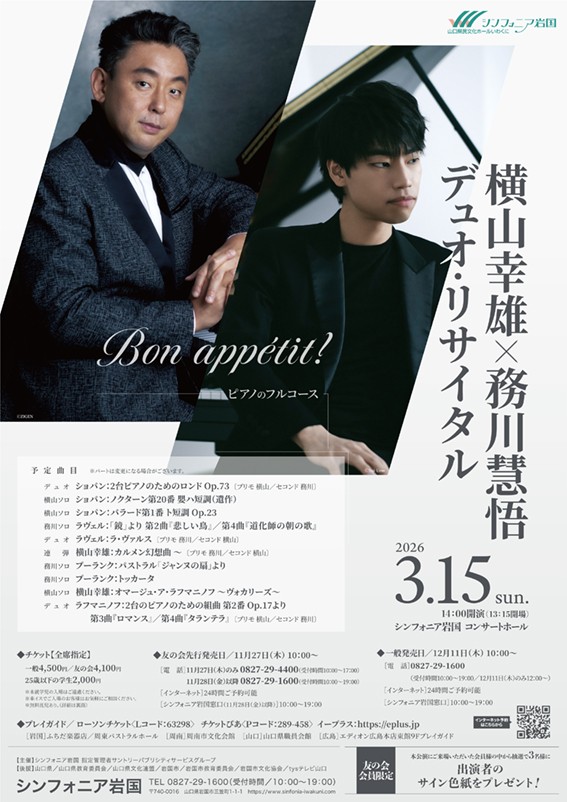 横山幸雄×務川慧悟 デュオ・リサイタル【友の会先行発売中・一般12/11(木)発売】