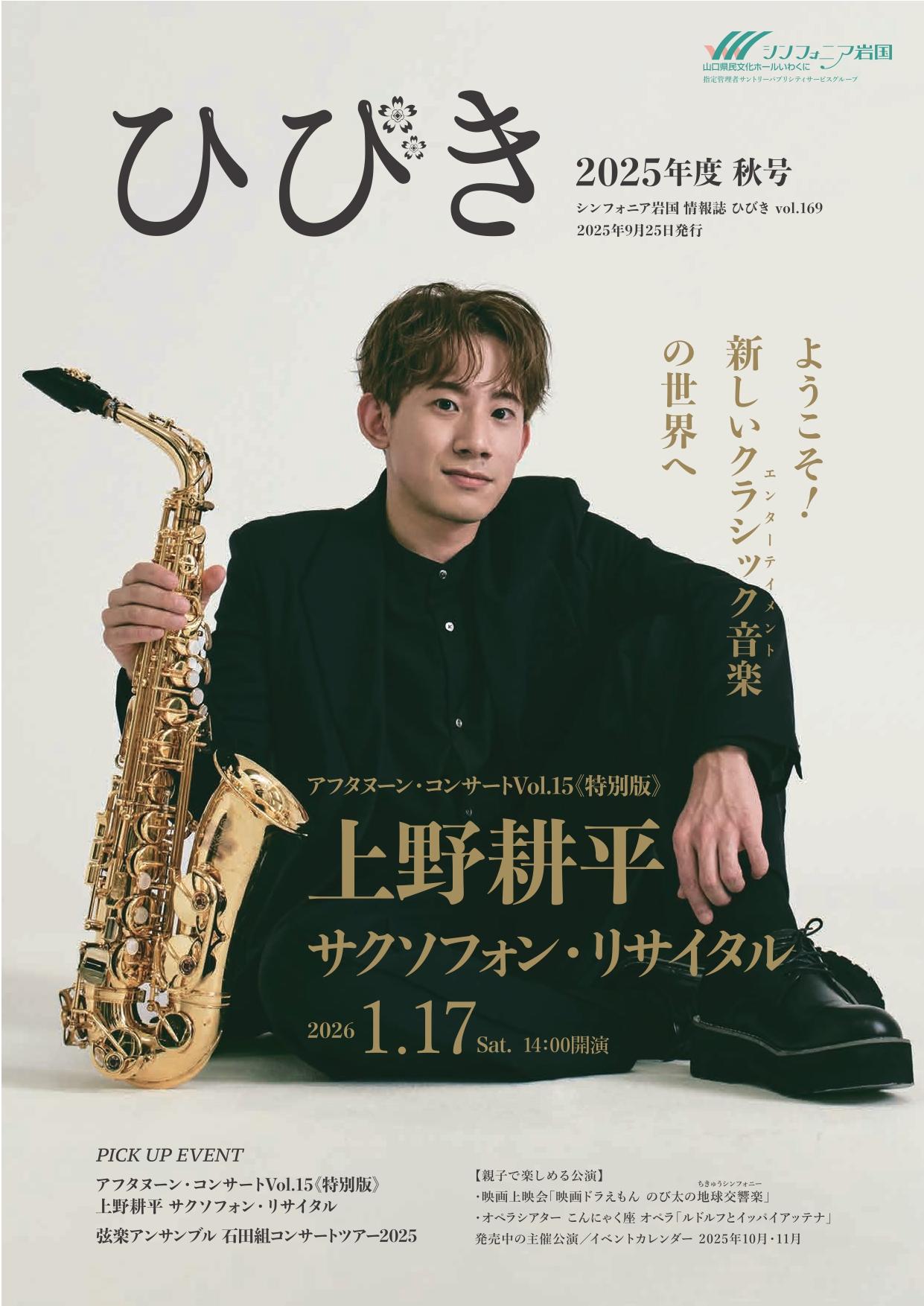アフタヌーン・コンサートVol.15《特別版》上野耕平 サクソフォン・リサイタル【好評発売中】