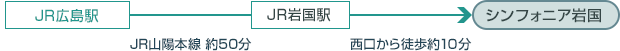 JR広島駅からJR岩国駅まで山陽本線で約50分。