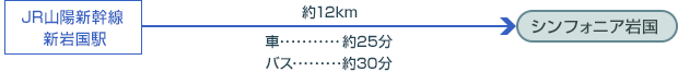 JR山陽新幹線新岩国駅から約12km。車で約25分、バスで約30分