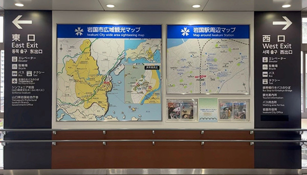 1.JR岩国駅の改札を通った後、「東口」の案内に従って左に進む